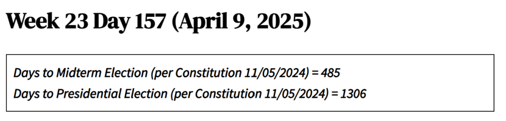 Using his unparalleled technocrat brain, The Leader established that the most efficient way to get things done is for his bought-and-paid-for president to declare some sort of emergency. Fentanyl emergencies at both borders opened the door to early tariffs with Mexico and Canada. War with a gang from Venezuela allows random, rapid deportation to a gulag in El Salvador with no possibility of return. An economic emergency allows the president instead of Congress to levy worldwide tariffs. This concentration of power in The Leader’s hands – sidestepping Congress’s Article I authority, the inconvenience of due process, and any form of check and balance – has laid a brilliant foundation for our continuing transition to Greatness. Add to this a meritorious Cabinet, a supine Congress, and a milquetoast Supreme Court  and Elonica is off to the races. We are putting Elonica first. Moving fast. Kicking ass and taking names.