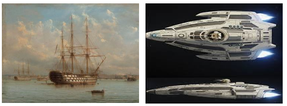 Like their approach to immigration, our Leaders are taking a multi-faceted approach to The Retribution. One sphere of activity is a military one. To support his Executive Orders regarding coal production and shipbuilding, and to further Elonican policy of killing people who dare to venture from the shores of South America in small boats, the President has commissioned the building of several new vessels. Using the AI that is the linchpin of our stock market, our navy has designed a new class of warship that combines the Retribution of the storied English Royal navy with that created for Star Wars.