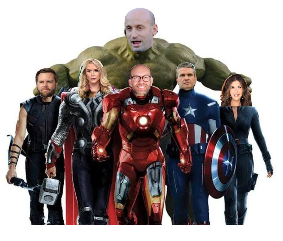 Our Unitrump, omnipotent though he is, cannot singlehandedly fix all that was broken in America. No, he needs a team behind him. He is counting on his own Avengers, possessed of special skills, to ensure total annihilation of all that was weak and broken in our failed democracy. He has tapped brilliance previously overlooked due to DEI and wokeness and assembled this powerful force (no need to enumerate their superpowers – we’ve all witnessed them):
